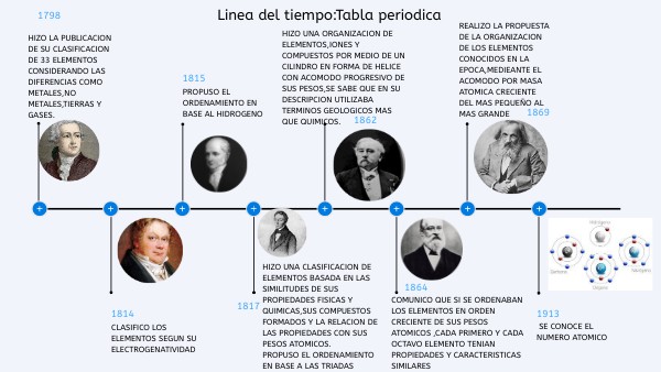 REALIZO LA PROPUESTA DE LA ORGANIZACION DE LOS ELEMENTOS CONOCIDOS EN LA EPOCA,MEDIEANTE EL ACOMODO POR MASA ATOMICA CRECIENTE DEL MAS PEQUEÑO AL MAS GRANDE