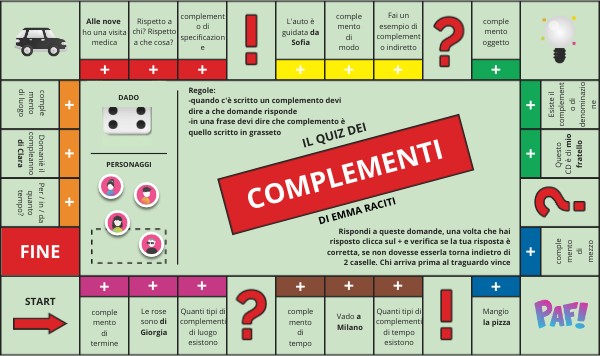 Rispondi a queste domande, una volta che hai risposto clicca sul + e verifica se la tua risposta è corretta, se non dovesse esserla torna indietro di 2 caselle. Chi arriva prima al traguardo vince