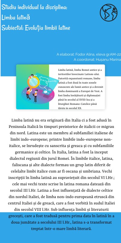 Studiu individual la disciplina: Limba latinăSubiectul: Evoluția limbii latine