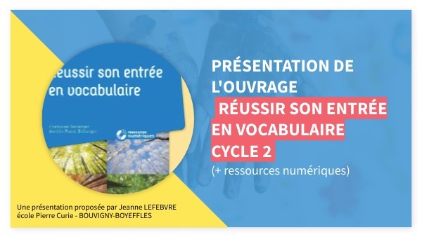 Présentation de l'ouvrage Réussir son entrée en vocabulaire cycle 2