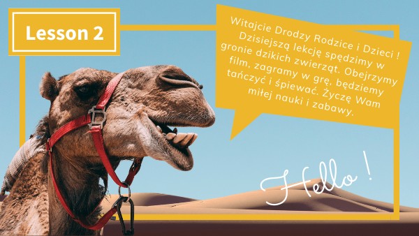 Witajcie Drodzy Rodzice i Dzieci ! Dzisiejszą lekcję spędzimy w gronie dzikich zwierząt. Obejrzymy film, zagramy w grę, będziemy tańczyć i śpiewać. Życzę Wam miłej nauki i zabawy.