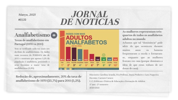 Discentes: Carolina Aranda, Eva Pedroso, Joana Pinheiro e Lara NogueiraDocente: Carmen Cavaco U.C: Políticas e Prática de Educação e Formação de Adultos 2º ano - 2º semestre 2020/2021