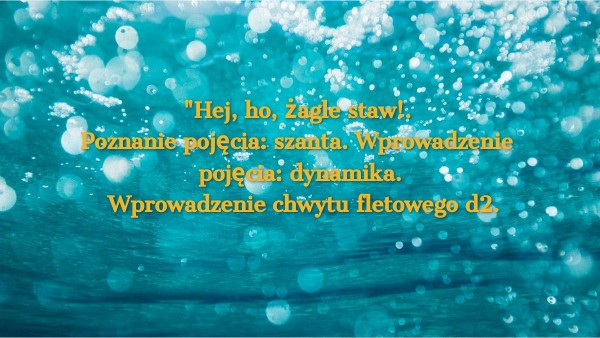 "Hej, ho, żagle staw!. Poznanie pojęcia: szanta. Wprowadzenie pojęcia: dynamika. Wprowadzenie chwytu fletowego d2.