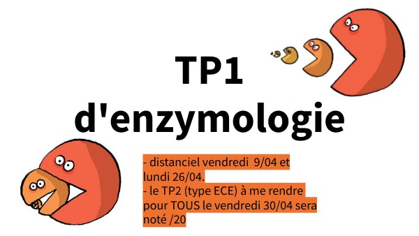 Finalisez votre compte rendu . Voilà, c'est terminé pour ce TP1 d'enzymologie. et soyez prêts pour le TP2 (type ECE) noté à me rendre sur pronote le vendredi 30 avril.