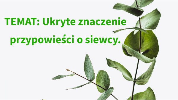 TEMAT: Ukryte znaczenie przypowieści o siewcy.