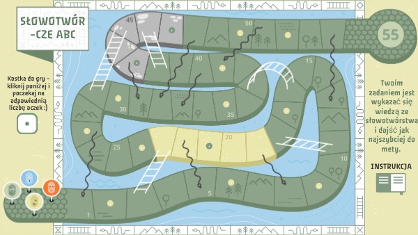 Twoim zadaniem jest wykazać się wiedzą ze słowotwórstwa i dojść jak najszybciej do mety.