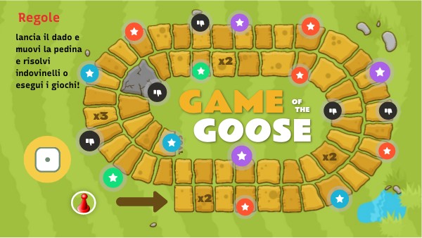 lancia il dado e muovi la pedina e risolvi indovinelli o esegui i giochi!