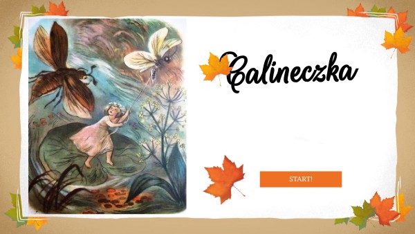 autor: Hans Christian Andersen tytuł: Calineczka główny bohater: Calineczka inni bohaterowie: ropucha, mysz polna, kret, jaskółka, książę elfów, kobieta