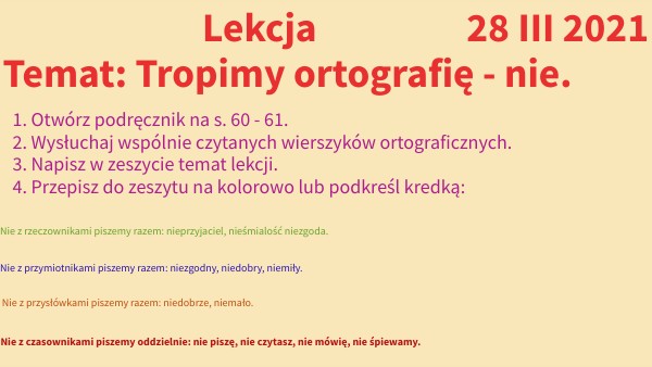 Lekcja 28 III 2021 Temat: Tropimy ortografię - nie.