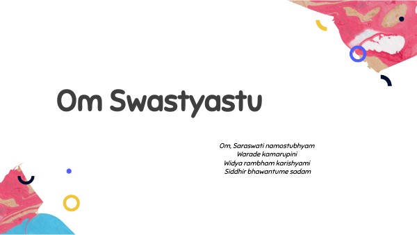 Om, Saraswati namostubhyamWarade kamarupini Widya rambham karishyami Siddhir bhawantume sadam