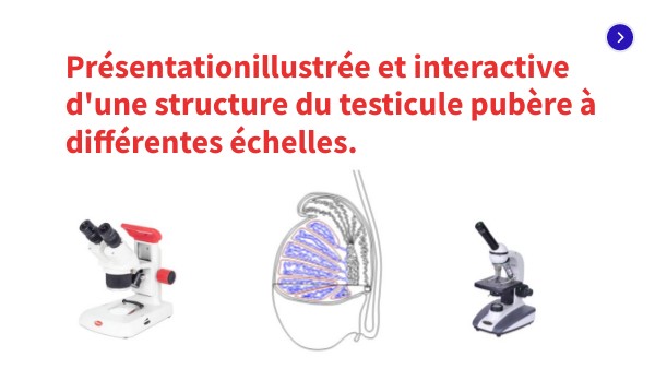 Présentationillustrée et interactive d'une structure du testicule pubère à différentes échelles.