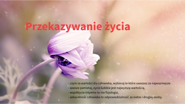 - czym sa wartości dla człowieka, wybieraj te które uwazasz za najwazniejsze - zawsze pamietaj, zycie ludzkie jest najwyższą wartością, - współżycie intymne to nie fizjologia,