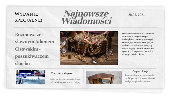 Przeprowadzamy wywiad z Adamem Cisiwskim, o którym teraz jest bardzo głośno. Dowiemy się różnych rzeczy o jego rodzinie oraz o tym jak udało mu się znaleźć ten niezwykły skarb z Bejgoły. Odwiedzimy również tajemniczy dom państwa Gąsowskich z którego znikały... drzwi!