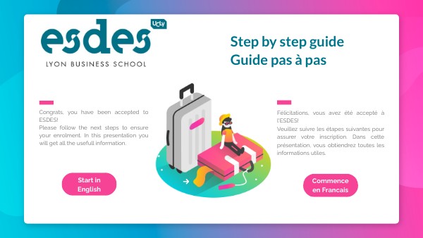 Congrats, you have been accepted to ESDES! Please follow the next steps to ensure your enrolment. In this presentation you will get all the usefull information.