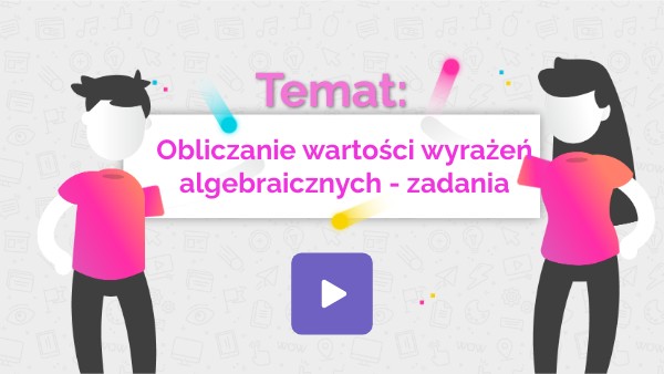 Wczoraj oglądając filmik zapoznaliście się z zasadami obliczania wartości wyrażeń algebraicznych. Dziś Waszym zadaniem będzie wykorzystanie tej umiejętności w zadaniach. Popracujecie troszkę z ćwiczeniami. Temat zapiszcie do zeszytu, ćwiczenia rozwiwązuj w zeszycie ćwiczeń. Pamiętaj, że jeśli potrzebujesz powtórki - możesz ponownie włączyć wczorajszy filmik z wyjaśnieniem.