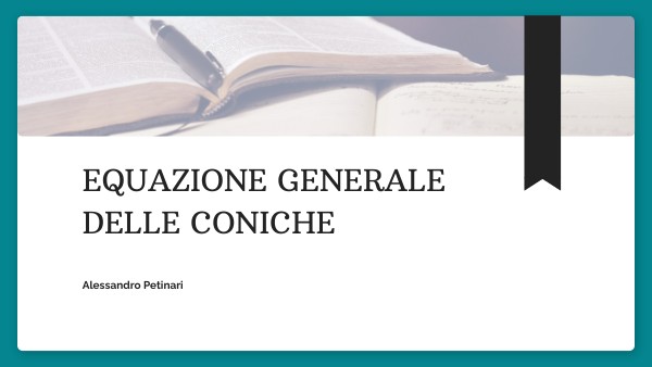 Ora che abbiamo capito come si formano le coniche, è arrivato il momento di presentare la loro formula generale:Ax2 + Bxy +Cy2 + Dx + Ey + F = 0 Si puo dire che essendo l'equazione di una conica individuata da 5 parametri indipendenti una conica generica sara' individuata mediante 5 punti (o condizioni indipendenti): Sarebbe a dire che per 5 punti passa una ed una sola conica.