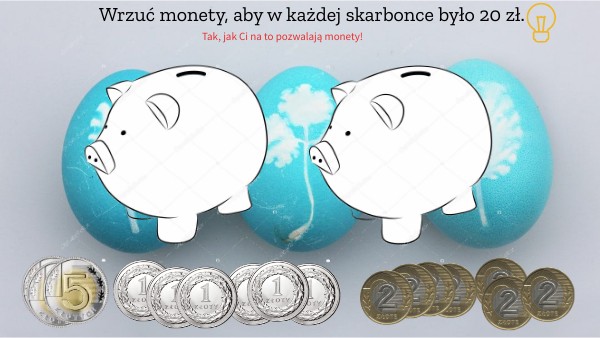 Wrzuć monety, aby w każdej skarbonce było 20 zł.
