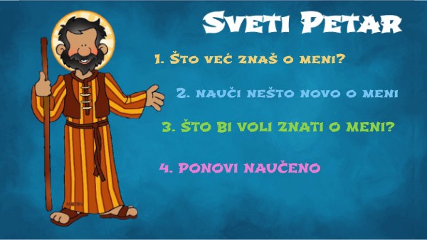 Pročitaj kako je izgledao moj život prija Isusa, s Isusom i nakon Isusa (klikni na oblake). U bilježnicu napiši pitanje ŠTO SAM NOVO NAUČIO / NAUČILA O PETRU? Napiši 3 odgovora na postavljeno pitanje u obliku natuknica.