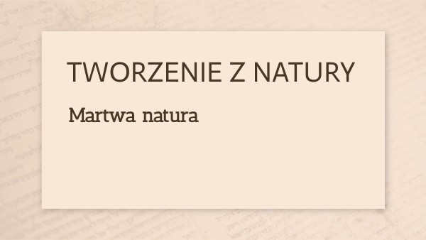 Czym jest tworzenie z natury ?