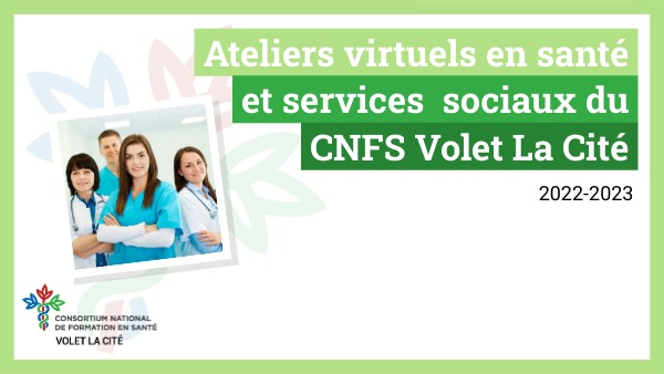 Le Consortium national de formations en santé (CNFS) – Volet La Cité est heureux de lancer son offre d’ateliers virtuels en santé et services sociaux pour l’année 2022-2023