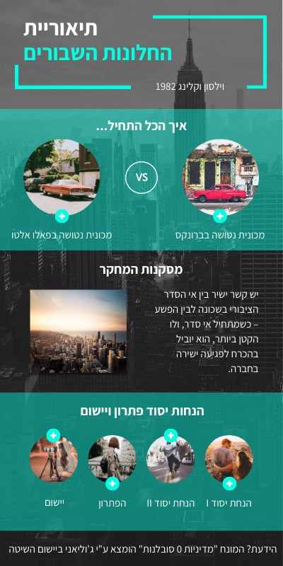 יש קשר ישיר בין אי הסדר הציבורי בשכונה לבין הפשע – כשמתחיל אי סדר, ולו הקטן ביותר, הוא יוביל בהכרח לפגיעה ישירה בחברה.
