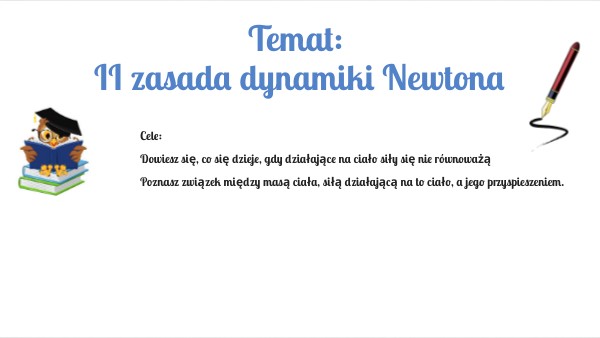 Cele: Dowiesz się, co się dzieje, gdy działające na ciało siły się nie równoważą Poznasz związek między masą ciała, siłą działającą na to ciało, a jego przyspieszeniem.