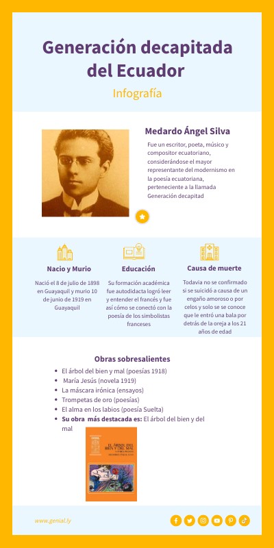 Nació el 8 de julio de 1898 en Guayaquil y murio 10 de junio de 1919 en Guayaquil