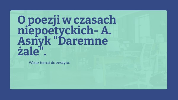 O poezji w czasach niepoetyckich- A. Asnyk "Daremne żale".