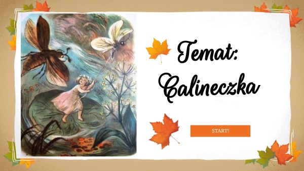 Metryczka lektury:Autor: Hans Christian Andersen Tytuł: Calineczka Główny bohater: Calineczka Inni bohaterowie: kobieta, ropucha, mysz polna, kret, jaskółka, książę elfów.
