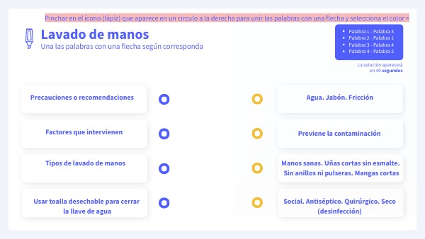 Pinchar en el ícono (lápiz) que aparece en un circulo a la derecha para unir las palabras con una flecha y selecciona el color > > > > >