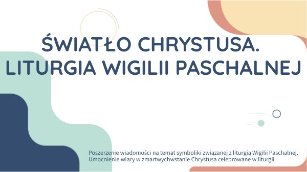 Temat: Światło Chrystusa. Liturgia Wigilii Paschalnej.