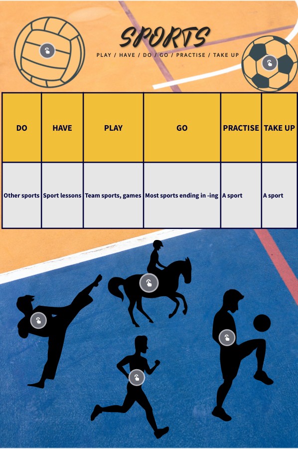 Sports - DO/HAVE/PLAY/GO/PRACTISE/TAKE UP