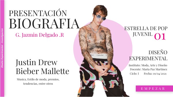 Justin Bieber reconocido cantante y compositor canadiense, hijo de Jeremy Bieber y de Pattie Mallette, reconocido por ser uno de los cantantes del pop más famosos a nivel mundial. Nació el 1 de marzo de 1994 en London, Ontario, Canadá. Creció en Stratford solo con su madre, ya que su padre al poco de nacer los abandonaria. Desde muy pequeño, mostró un gran interés por la música y, para su segundo cumpleaños, su madre le regaló una batería. A medida que crecía, aprendió de manera autodidacta a tocar el piano, la batería, la guitarra y la trompeta. A los 12 años participó en un concurso de canto local grabado por su madre quien poco después decidiría publicarlo para sus familiares y amigos. A finales del 2008 comenzó a subir otros videos de su hijo en los que aparecía interpretando canciones de Usher, Chris Brown,Stevie Wonder y Justin Timberlake, videos que poco despues serian vistos por el ejecutivo musical Scooter Braun quien