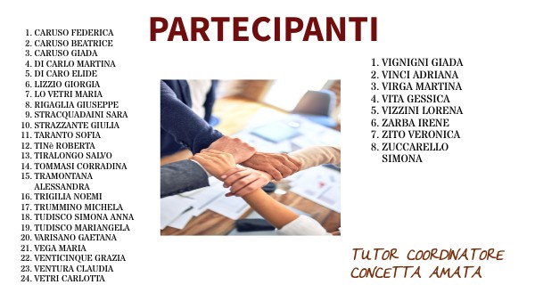"Il laboratorio linguistico espressivo è stato per me un percorso molto interessante, che mi ha permesso di approfondire determinati concetti e scoprirne altri nuovi. Le varie app utilizzate durante il laboratorio, sono state una vera e propria scoperta, grazie ad esse ho capito che svariati contenuti possono essere presentati sotto varie forme. Gli argomenti affrontati, li ho ritenuti tutti particolarmenti coerenti con il percorso ed interessanti; l’argomento che maggiormente mi ha coinvolto è quello relativo alla lettura ad alta voce ed i benefici ad essa connessi. Alla fine di questo percorso posso affermare di aver arricchito le mie conoscenze, le mie basi tecnologiche; tutto ciò è stato possibile grazie alla nostra tutor Concetta Amata, la quale è stata sempre a disposizione per noi e pronta a risolvere e chiarire tutte le nostre difficoltà e i nostri dubbi.."