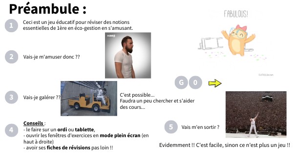Ceci est un jeu éducatif pour réviser des notions essentielles de 1ère en éco-gestion en s'amusant.