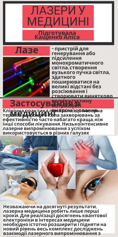 Клінічна практика показала, що лазерна терапія широкого кола захворювань за ефективністю часто набагато краща, ніж інші способи лікування. Низькоінтенсивне лазерне випромінювання з успіхом використовується в різних галузях медицини.