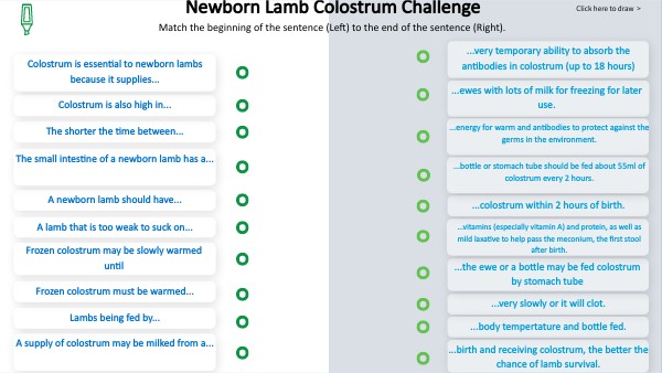 Newborn Lamb Colostrum Challenge (Match)