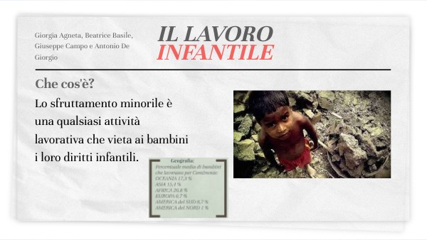 Lo sfruttamento minorile è una qualsiasi attività lavorativa che vieta ai bambini i loro diritti infantili.