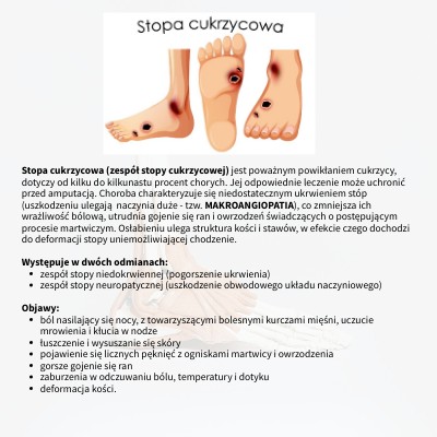 - zespół stopy neuropatycznej (uszkodzenie obwodowego układu naczyniowego)