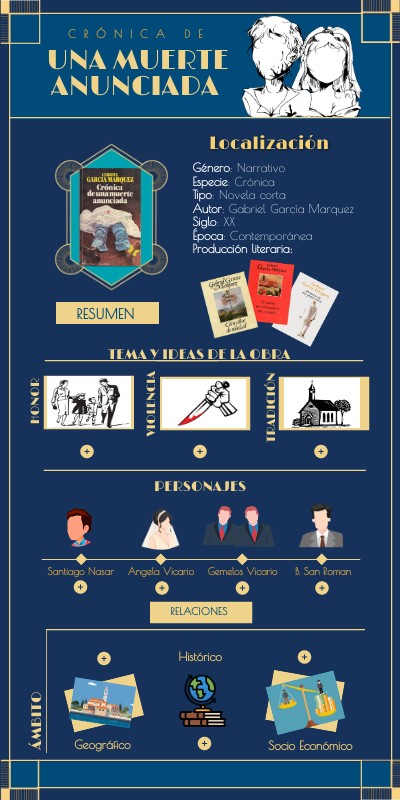 Márquez, G. G. (2001). Crónica de una muerte anunciada. Editorial El Mundo. https://docs.google.com/viewer?a=v&pid=sites&srcid=ZGVmYXVsdGRvbWFpbnxjb2xlZ2lvNzE0dHJlbGV3fGd4OjcxNzE4NjE3MzEzNGNmNQ Samper, D. (2020, 29 mayo). Colombia años 50: creer, un verbo en futuro imperfecto. Revista Diners | Revista Colombiana de Cultura y Estilo de Vida. https://revistadiners.com.co/cultura/37395_colombia-anos-50-creer-verbo-futuro-imperfecto/#:%7E:text=En%20los%20a%C3%B1os%2050%2C%20Colombia,pu%C3%B1aladas%20en%20la%20d%C3%A9cada%20anterior. Desconocido. (14 de junio de 2014). "Crónica de una muerte anunciada." Recuperado de: ttp://cronicamuerteanunciada.blogspot.com/ https://juanmdrs.files.wordpress.com/2012/05/crc3b3nica-de-una-muerte-anunciada.pdf Juanmdrs. (Mayo, 2012). Crónica de una muerte anunciada, Gabriel https://juanmdrs.files.wordpress.com/2012/05/crc3b3nica-de-una-muerte-anunciada.pdf