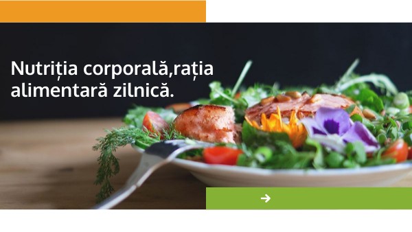 Nutriția reprezintă,de fapt,modul prin care corpul își extrage toate elementele necesare dezvoltării sale,energiei pe care o consumă zilnic și regenerării corporale.Nutriția echilibrată,combinată cu exercițiile fizice și cu tratamentele specifice fiecărei persoane,ajută la o dezvoltare armonioasă și la un corp și o minte sănătoasă. Alimentația variată optimă cuprinde toate tipurile de alimente care conțin proteine,glucide,lipide,vitamine necesare organismului.Nutriția corectă constă într-un echilibru al acestor elemente nutritive. Proteinele reprezintă substanțele care ajută la menținerea și dezvoltarea masei musculare ,a masei osoase și a cartilajelor.Ele pot fi găsite în alimente ,precum:cereale integrale,alune,semințe,produse lactate,carne(de pui,de pește,de vită).