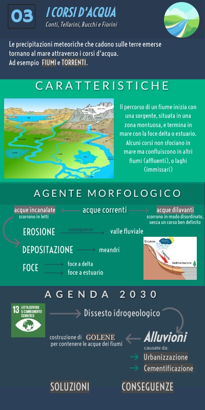 Le precipitazioni meteoriche che cadono sulle terre emerse tornano al mare attraverso i corsi d'acqua. Ad esempio e TORRENTI.