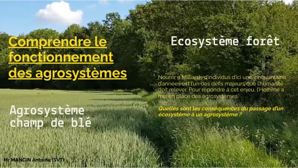 Nourrir 9 Milliards d’individus d’ici une cinquantaine d’années est l’un des défis majeurs que l’humanité doit relever. Pour répondre à cet enjeu, l’Homme a mis en place des agrosystèmes. Quelles sont les conséquences du passage d’un écosystème à un agrosystème ?