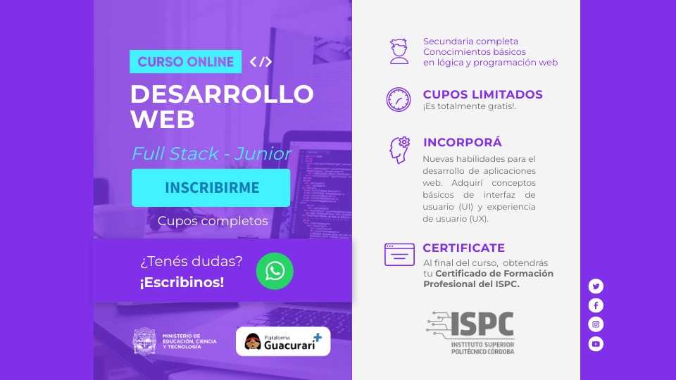 Al final del curso, obtendrástu Certificado de Formación Profesional del ISPC.