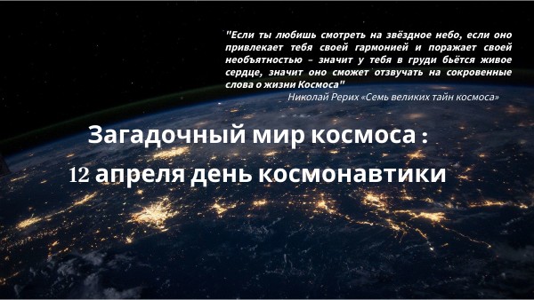 Загадочный мир космоса : 12 апреля день космонавтики