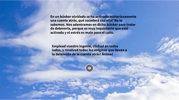 Emplead vuestro ingenio, clickad en todos lados, y resolved todos los enigmas que llevan a la detención de la cuenta atrás! Ánimo!