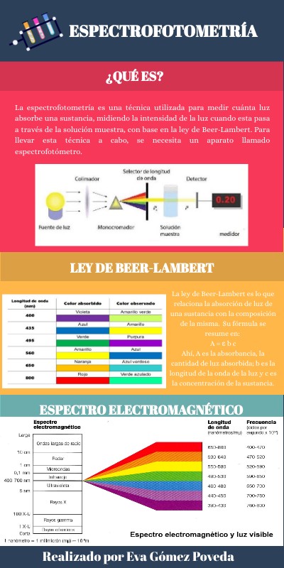La espectrofotometría es una técnica utilizada para medir cuánta luz absorbe una sustancia, midiendo la intensidad de la luz cuando esta pasa a través de la solución muestra, con base en la ley de Beer-Lambert. Para llevar esta técnica a cabo, se necesita un aparato llamado espectrofotómetro.