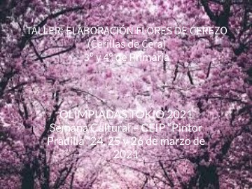 El pasado año 2020 no se pudieron celebrar las olimpiadas de Tokio debido a la pandemia, este verano 2021, teniendo muy en cuenta las medidas de seguridad, se celebrarán dichas olimpiadas, por lo que los alumnos de 3º y 4º hemos decidido elaborar un photocaal que además sirva para decorar la entrada de nuestro cole en el que se haga referencia a dichas olimpiadas sin olvidar de animarlo con flores de cerezo elaboradas pacientemente con cerillas de cera en cada una de nuestras aulas durante esta bonita y animada Semana Cultural.