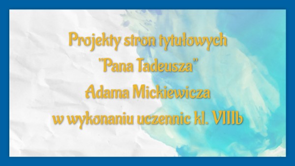 Projekty stron tytułowych"Pana Tadeusza"Adama Mickiewiczaw wykonaniu uczennic kl. VIIIb