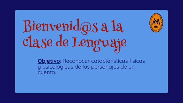 Objetivo: Reconocer catacterísticas físicas y psicologícas de los personajes de un cuento.